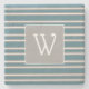 Custom Monogram on Turquoise and Grey Striped Stone Coaster