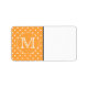 A customisable monogram initial letter on a background of an orange and white polka dot pattern. The letter can be personalised.