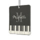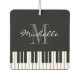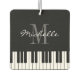 Custom monogram piano keys car air freshener. Fun accessory for teacher or student. Black and white grand piano keys with monogrammed name. Elegant script lettering design with stylish typography and personalised name initial letter. Cute gift idea for pianist, piano instructor, piano player, musician, piano man, music school lessons, artist, singer etc. Classical instrument keyboard print for men women and kids. Birthday or Christmas present suggestion. Make your car smell like new. Double sided print.