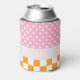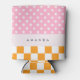 Custom Monogram Pink Orange Polka Dot Check Can Cooler
