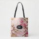 Medium sized Custom Monogram Pink White Gold Floral Tote Bag. Use your name initials for your own monogram, and make your bag unique and special to yourself. Thank you InfinityDigitalArt..
