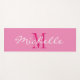 Custom monogram pink yoga mat for workout. Elegant design for yoga lessons, class trainer, coach or gym instructor. Fun personal fitness equipment gift for him or her. Add your own glamourous name and monogrammed initial. Sports material for yoga poses. Stylish script typography template. Novelty Birthday gift ideas for men and women.