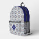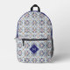 Custom Monogram Portugese Tiles Pattern Printed Backpack