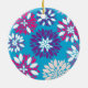 Custom Monogram Purple Pink White Flower on Blue Ceramic Tree Decoration