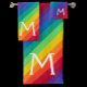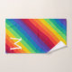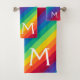 Rainbow Bath Towel Set featuring monogram initials and colourful background.