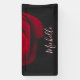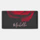Macro photo of a beautiful red rose on black background with vintage grainy effect with custom personalizable monogram.
