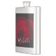 The product is a good size and came exactly as it was pictured. The lid is not attached to the flask, which could be dangerous on drunken nights... The print came out surprisingly well and looks very sharp. Would definitely recommend.