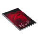 Macro photo of a beautiful red rose on black background with vintage grainy effect with custom personalizable monogram.