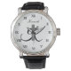 Custom monogram religious cross watch gift for men. Elegant roman numerals with stylish script typography and icon. Classy black leather band. Chic black and white Christian faith monogrammed logo with custom name initial letter, quote or surname. Unique gift idea for deacon, preacher, ministry, friends, family, brother, dad, grandpa, grandfather, husband, son, boss, co worker, coach, church pastor, priest, Catholic, Baptist, Lutheran, Evangelical, Methodist, Protestant etc. Add your own date, spiritual quote, inspirational scripture, commemorative words, Jesus sayings or custom bible verse. Personalised Christianity symbol presents for him and her. Also nice for other occasions like commemoration, ordination, christening, confirmation, communion, remembrance, funeral, thank you, congratulations, wedding, anniversary, ordainment, Birthday etc. Personalised wrist watches for adults and kids. Diameter 44.45 mm.