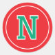 Custom Monogram Retro Typography Red Green Classic Round Sticker