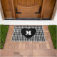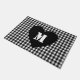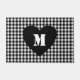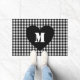 Custom Monogram Script Heart Black & white plaid Doormat