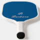 This modern carbon fibre pickleball paddle design features a blue background, with your initials in white highlighted in red, with a custom script for a look that is simple and stylish. This Pickleball Paddle is ideal for wide range of players and experience. Featuring a hand wrapped grip and fiberglass & polypropylene honeycomb core, this lightweight paddle offers excellent feel and ample power for the competitive player. The smooth hitting surface and conventional shape allows for a bigger sweet spot for more solid contact. Any design questions just send a chat or an email to v.dye@rcn.com and we'll be delighted to assist.