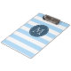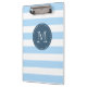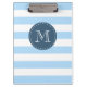 Custom Monogram Sky Blue and Navy Bold Stripes Clipboard
