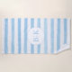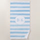 Simple but perfect for any occasion, this pale blue and white stripe blanket with custom monogram is the perfect beach accessory!