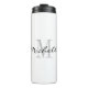 Custom monogram thermal tumbler travel mugs for coffee, tea and other drinks.