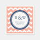 Custom Monogram Wedding Napkin Coral Blue Chevron