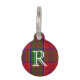 Fun monogrammed dog tag with the front done in the red, white, blue, and green clan Grant plaid pattern, with a big white one letter monogram. The back of the tag is done in red, with white text. Personalise the monogram and the text on the back to suit your needs.