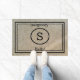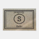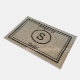 Welcome your guests with this rustic burlap background door mat with your monogram and a black typography "hello" and" goodbye"