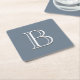 Custom Monogrammed Initial Medium Blue & White Square Paper Coaster