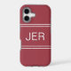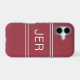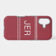 Stylish custom design features up to three bold letter initials in a shadowed white font on a contemporary crimson red background. Background is divided into thirds by two matching stripes above and below the initials. Simple to use modern template allows for easy personalisation. E-mail beachpausedesigns@gmail.com or use the message link in this listing with questions or custom colour requests.