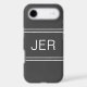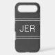 Stylish custom design features up to three bold letter initials in a shadowed white font on a contemporary charcoal grey background. Background is divided into thirds by two matching stripes above and below the initials. Simple to use modern template allows for easy personalisation. E-mail beachpausedesigns@gmail.com or use the message link in this listing with questions or custom colour requests.