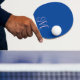 Custom monogrammed two tone pink and blue ping pong paddle, edit the text yourself when ordering.