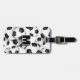 This soccer themed luggage tag is printed on the front with the image of a cluster of varied size black & white soccer balls - customise with the athlete's monogram on the front and address info on back - by katz_d_zynes