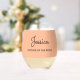 With a fresh peach background colour, this stemless wine glass features an elegant, minimalist design. Personalise with the mother of the bride's name, which will be displayed in stylish script typography.