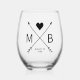 Custom Monograms Love Heart Arrows 2024 Stemless Wine Glass