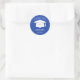 This custom graduation sticker with a mortarboard hat and custom graduation year number, college name, and graduate text on a custom blue background is a nice choice for college graduate events or any school graduation celebration event. Custom it to make it personal.