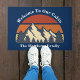 This awesome sunset over rocky mountains and forest trees in nature makes a great image for a custom welcome doormat for your summer camp, RV park, or log cabin in the woods. Just add your own personalised text to welcome campers or bed and breakfast guests to your lodge. Customise with your own greeting or business name.