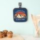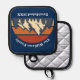 This awesome sunset over rocky mountains and forest trees in nature makes a great image for a custom pot holder for a family log cabin in the woods. Just add your own personalised monogram and established date on the blue house gift.