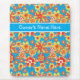 A pretty Mousepad to personalise, with a pattern of ditzy flowers in orange, yellow and red on a turquoise blue background, from a handpainted paper collage by Judy Adamson.