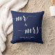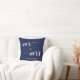 Custom Mr. and Mrs. navy blue and white wedding pillows with customisable text - you can add bride's and groom's name and wedding date