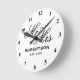 Custom Mr and Mrs newlyweds wedding gift clock. Elegant script typography template with family name and date of marriage. Classy presents for just married couple or bride and groom. Chic black and white design home decor. Personalised decor for unique kitchen, office, living room, bedroom etc. Add your own established year and surname. Customisable colours.