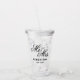 Custom Mr & Mrs acrylic tumbler glass for wedding party. Personalised drink ware for newly weds couple, bride and groom, husband and wife, friends, family, guests etc. Fun transparent plastic cups with stylish script typography template. Includes lid and straw. Great for drinking smoothies, cocktails and other drinks. Available in different colours including purple, pink and green. Also great for outdoor reception, engagement BBQ, summer garden party, anniversary, elegant bridal shower etc. Add your own surname and date of marriage.