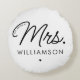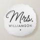 Custom Mrs. Est. Modern Elegant Script Newlywed Round Cushion