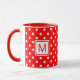 Fun whimsical polkadots pattern on bright vibrant red background. With room to customise or personalise with monogram or initials of your choice. Trendy and funky hipster design for the vintage retro style or abstract geometric motif lover.