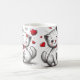 Imagine a white, delicate mug with a smooth and glossy surface. Around it, there's a charming design of cute kittens, all with adorable expressions, big, bright eyes. Some kittens are playfully chasing colorful yarn balls, while others are lying down, striking a "cute" pose with their little paws. The cats are drawn in soft shades of gray, white, and beige, with small pink details on their ears and noses, creating a subtle and endearing contrast. The background of the mug features tiny cat paw prints and hearts scattered around. This mug evokes a cozy, affectionate feeling, perfect for anyone who loves cats and wants a cute, warm touch for their coffee or tea moments.
