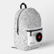 Lightweight and durable, our custom all-over-print Backpack is just what you need. The spacious interior is ideal for travel, school, gym, or any mobile storage need. Bring your stuff with you in style! Features Adjustable padded shoulder straps, two chambers on the inside for laptop storage, mesh side pockets and an identification label.