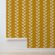 Custom Mustard 70s Retro Leaf Pattern Wallpaper