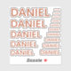 A simple name in terracotta brown caps in 15 different sizes. The name can be changed with another short name. The default is Daniel.