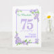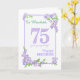 A very pretty 75th birthday card for you to customize with the name of the recipient. There are clusters of blue and purple Phlox flowers around the narrow purple border, painted by hand in watercolours. The front cover greeting is, '75 years young today! HAPPY BIRTHDAY!' on a lightly textured white, basket-weave background and the number 75 is filled with a matching check gingham pattern. There is plenty of space at the top for you to add the name of the recipient and the inside message can also be personalized.