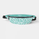 This unique fanny pack design is whimsical and feminine. The front background consists of an abstract white floral pattern on a colourful teal green background. The area above the zipper is solid green and is perfect for your custom name or short text in stylish white script. All colours in this design can be customised and you may further personalise the bag with your choice of font type in the design tool area. Contact me at beachpausedesigns@gmail.com with any questions or custom colour requests.