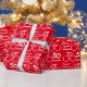 Cyclist birthday wrapping paper in bright red and white. Personalise this cycling celebration birthday paper with your choice of name or relative and age. Currently reads Happy Birthday Gavin 50. Ideal for cycle gifts and cycling sports fan. © Graphic art and designed by Sarah Trett.