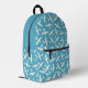 Stylish aviation backpack with custom text and a retro aeroplane design. This editable template is personalised on both sides with the recipient's name, a fun saying, or custom text. An all-over pattern featuring fixed-wing aircraft in a simple, graphic style. Perfect for the flying enthusiast in your life! Printed colours: vintage blue and off-white, cream.