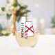Custom Name Alabama Flag and State Flower Camellia Stemless Wine Glass