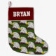 Custom name American bald eagle head pattern Small Christmas Stocking. Bird print with bold typography and customisable green background colour. Fun x-mas decorations for winter Holidays. Add your own name, monogram or seasons greeting. Create a sock sack for son, daughter, boy, girl, children, sport coach, friends, pet etc. Small and large sizes. Choose from different materials including soft fleece.