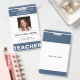 Simple personalised teacher id card - identification navy blue badge with your custom photo, name, title, and other details. +++++++++++++ Easy to customise on both sides! +++++++++++++++ Suitable for school, college, university teachers, tutors and other employees.