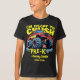 The t-shirt feels and looks great quality, a good thick cotton. It will be a little big for my son, but that means he will be able to wear it and not out grow it too soon. The print was as described on the order when personalised. True size, shape and colour T-shirt- thanks.